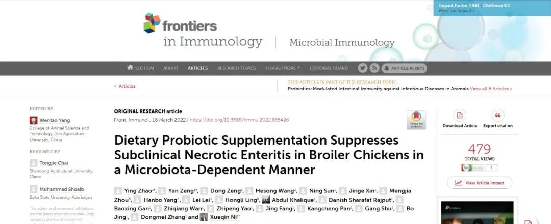 近日,關(guān)于中國(guó)雞的原籍菌-H2的研究新進(jìn)展已在Frontiers in Immunology進(jìn)行了刊載,文章通過(guò)日糧中添加原籍菌H2的方式,利用攻毒試驗(yàn)對(duì)H2改善亞臨床壞死性腸炎(SNE)肉雞的生長(zhǎng)性能的機(jī)制進(jìn)行了研究。各位感興趣的朋友,復(fù)制下方(或文末)鏈接打開瀏覽器即可閱讀原文!