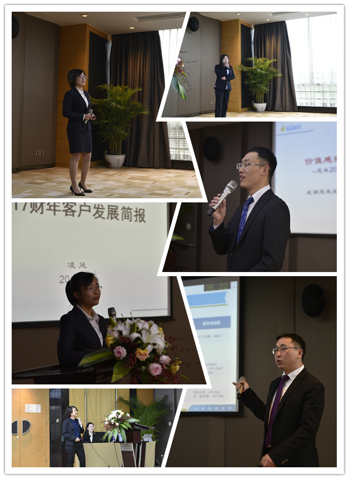 年會第一天,公司總經(jīng)理王峰先生率先做《2018,為偉夢而活》主題報告,報告回顧了思來“一五計劃”,總結(jié)了2017財年公司的業(yè)績與成就,提出了2018財年營銷目標與策略。2017年,公司在生意深度和廣度上持續(xù)推進,TOP50客戶數(shù)量進一步增加;升級研發(fā)能力和團隊能力,打造思來核心競爭力;必恩迪市場份額繼續(xù)擴大,在四大高效能藥添中排名第二。2018財年,基于行業(yè)政策變化和比恩迪產(chǎn)品唯一合法文號的優(yōu)勢,王總提出“2018,必定天下--共創(chuàng)DMBP的必恩迪時代”年度策略。