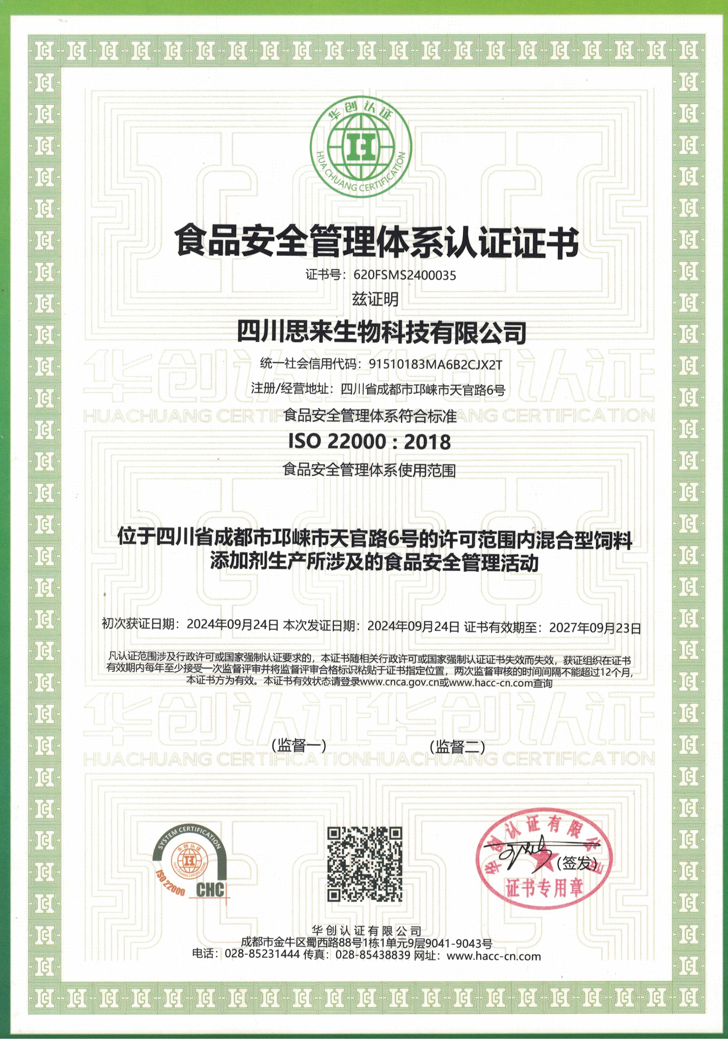 并于2024年9月24日為我司頒發(fā)了“食品安全管理體系認(rèn)證證書”。